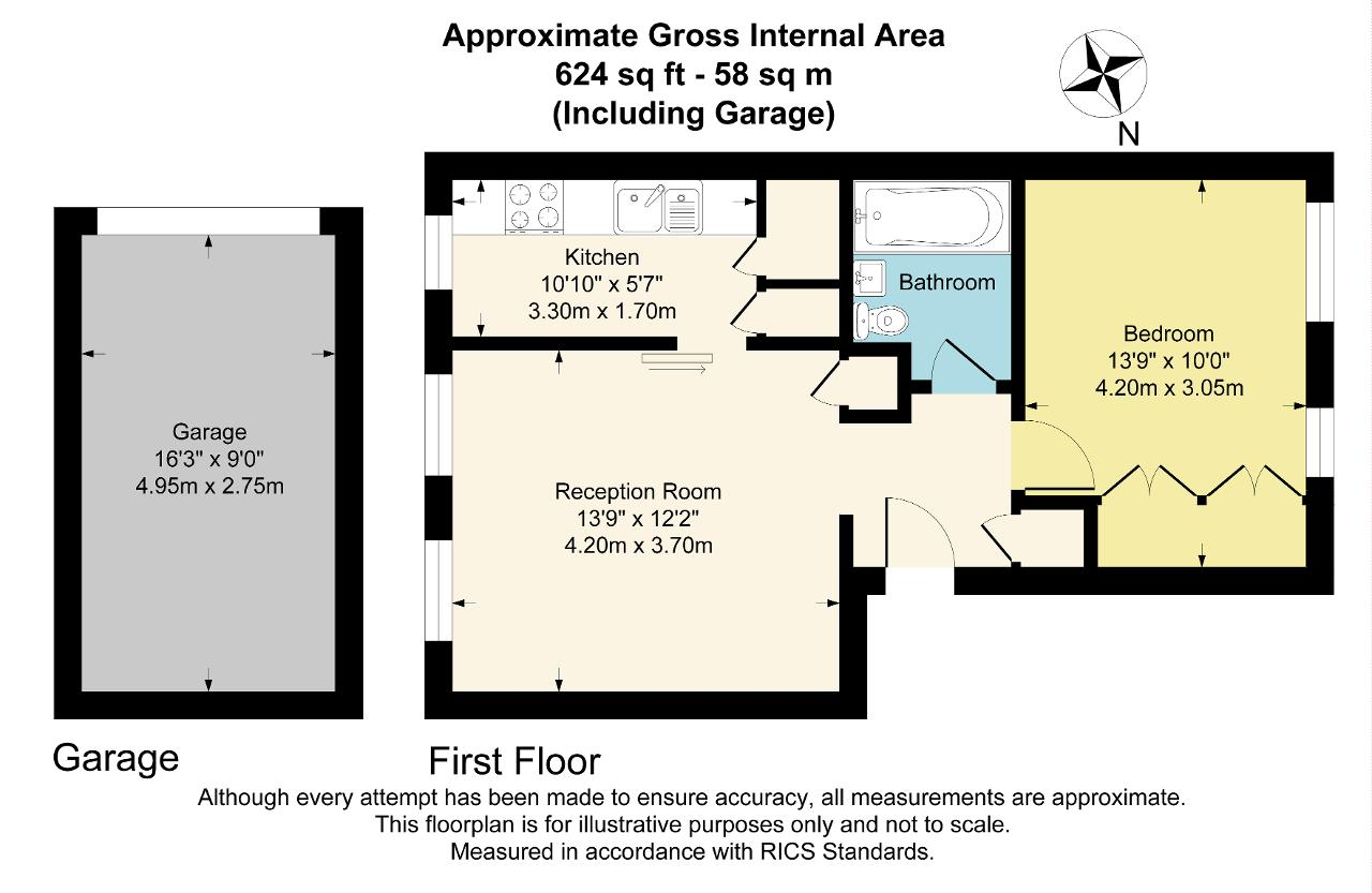 Hubbard Torlot are pleased to offer to the market this well presented one bedroom first floor flat. The property features an entrance hall, double bedroom with fitted wardrobes, a beautiful modern shower room having recently been refurbished, including a double shower with black trim and further black fittings to compliment the contemporary design. The fitted kitchen has a range of cupboards with shaker style doors, space for appliances and a pantry and is accessed from the spacious reception room. The property comes with a garage en bloc. Council Tax B