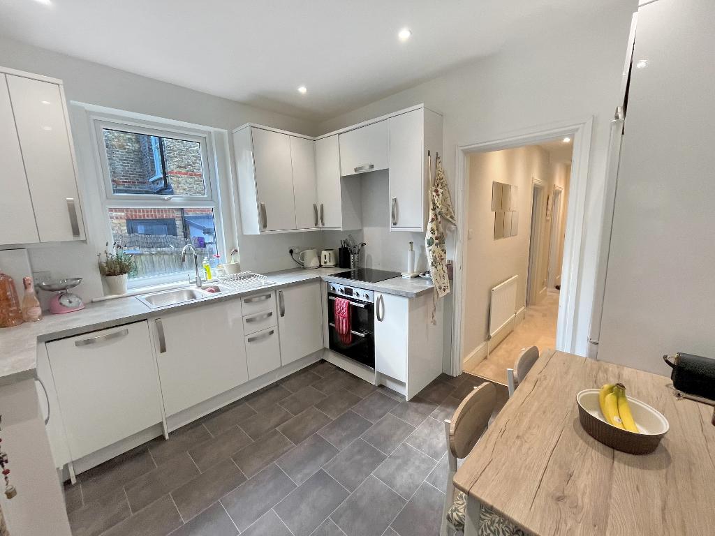 Chain Free - This charming ground floor Victorian garden flat offers a perfect blend of period character and modern comfort. Located in a sought-after area, the property features high ceilings throughout, enhancing the sense of space and light. The double bedroom boasts a large bay-fronted window, flooding the room with natural light and adding to the traditional charm. The modern fitted kitchen is finished in stylish white gloss, offering ample cupboard space and generous work surfaces. Integrated appliances include a double oven, hob, extractor fan, and dishwasher, making it ideal for both everyday living and entertaining. A contemporary bathroom features a white suite with shower over bath, complemented by tasteful part-tiled walls. Just off the bathroom is a useful utility area, with space and plumbing for a washing machine and tumble dryer. There is also a handy storage cupboard in the hallway, perfect for coats, cleaning items, or general storage. To the rear, the flat enjoys a private south-east facing garden, beautifully landscaped with mature shrubs, a well-kept lawn, and gravelled seating areas; a peaceful retreat perfect for morning coffee or evening relaxation. Council Tax C. 950 years remaining on the lease. Ground rent £150 per annum.