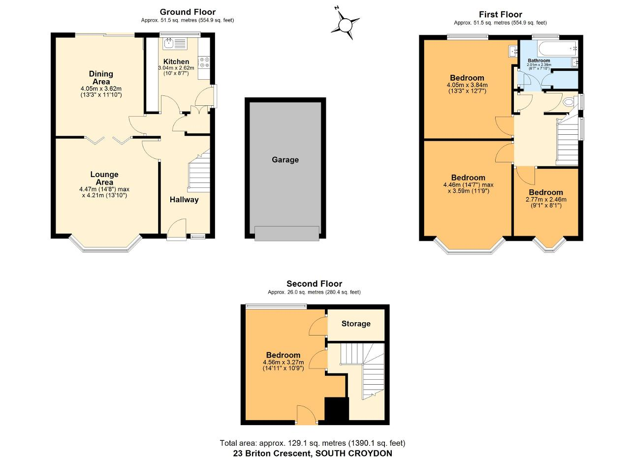 On the first floor are three bedrooms, family bathroom, separate wc and stairs to bedroom 4.