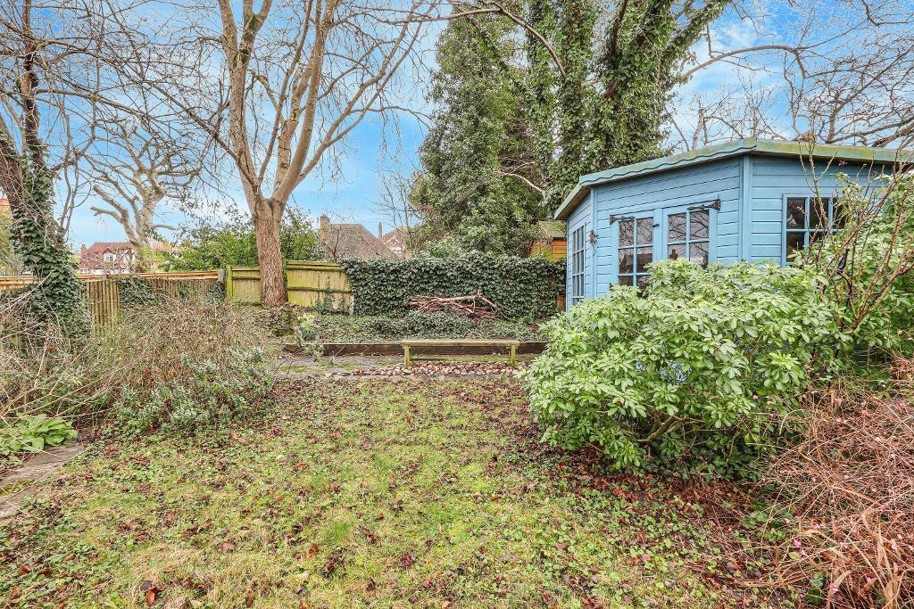 Outside, the rear garden is a superb and versatile space, featuring multiple seating areas, lawned sections, and mature hedging and shrub borders that provide both privacy and greenery. A charming summerhouse offers the perfect setting for relaxed summer evenings.