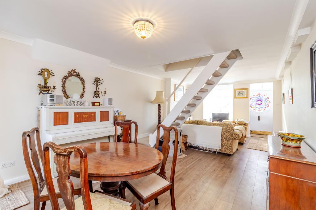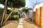 The property features two generously sized double bedrooms and a spacious open-plan living and dining area, ideal for both relaxing and entertaining. To the rear is a beautiful, established garden with mature trees including magnolia, Californian lilac, apple, and plum. Two York stone patios further enhance this attractive outdoor space.